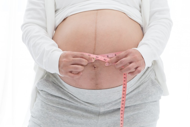 Начиная с 20-ой недели врач будет делать внешние замеры вашего живота с помощью сантиметровой ленты. Высоту он будет измерять от дна матки до верхнего края лонного сочленения, а окружность на уровне пупка. Врач оценивает и форму живота, которая во второй половине беременности также о многом «рассказывает». Шарообразный живот может свидетельствовать о многоводии, если живот напоминает поперечный овал — вполне возможно, что ребенок находится в поперечном предлежании. При нормальной беременности живот должен иметь яйцевидную форму, при этом у первородящих женщин с узким тазом он будет заостренный кверху, а если роды предстоят вторые или третьи — тогда живот будет немного отвислым.