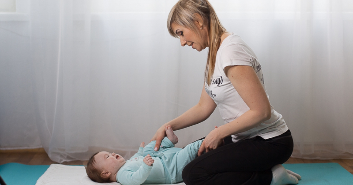 - Новорожденных до 3 месяцев удобно класть себе на колени или грудь. Когда малыш лежит у вас на коленях, приподнимайте ноги на носочки и опускайте, подвигайте ими из стороны в сторону. Когда же малыш у вас на груди, разговаривайте с ним и подбадривайте.